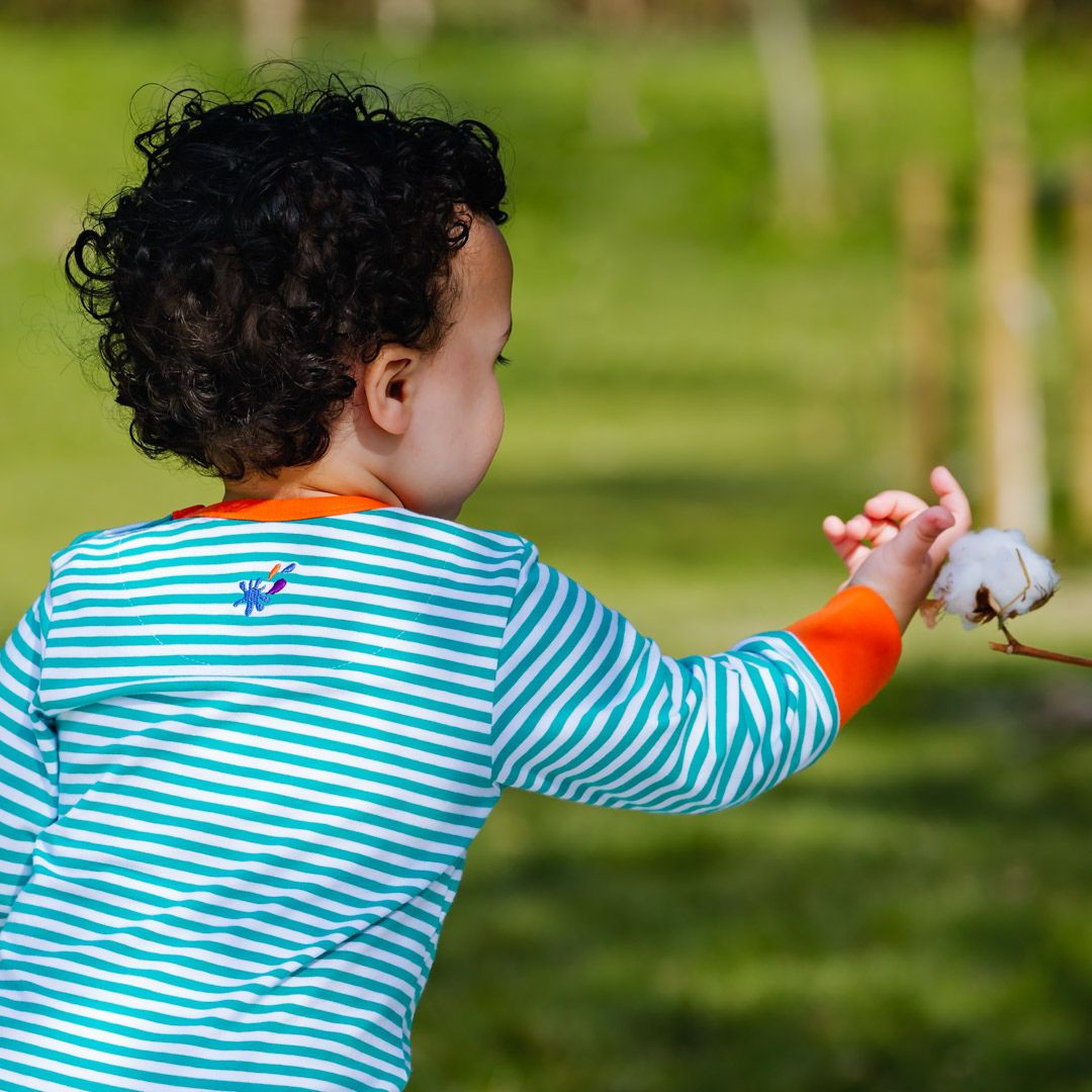 Our clothes are made from GOTS organic cotton to reduce their environmental impact and ensure fair and safe working conditions. No harmful chemicals are used in the growing of organic cotton, and it emits up to 46% less greenhouse gases than non-organic.